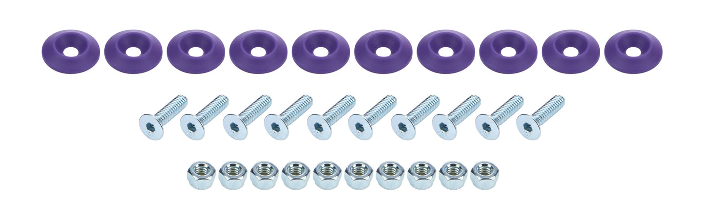Body Bolt Kit - 1/4-20 in Thread - 1 in Long - Allen Head - Bolts / Countersunk Washers / Lock Nuts Included - Plastic / Steel - Purple / Zinc Oxide - Set of 10