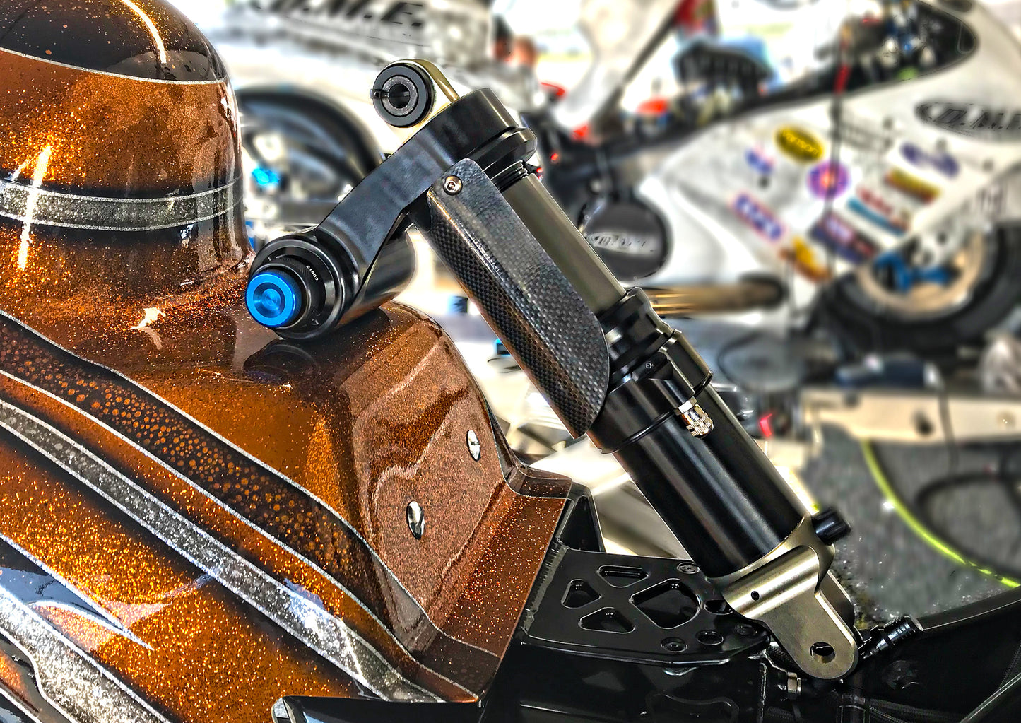 We decided to take the concept to a new level. One of the most common complaints with drag shocks is stiffness versus plush suspension feel. On other shock absorbers, in order to plant the tire you need to use enough spring pressure to do so and have the valving to control it, the tradeoff is it feels too stiff to a rider and is too stiff everywhere else on the track giving up much-needed power added.