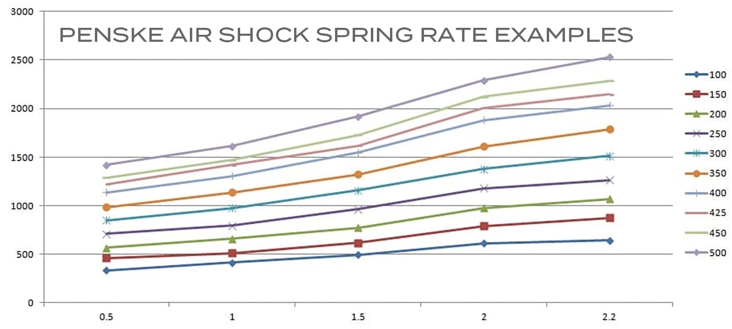 THE choice for drag racers and serious street/grudge racers. The 8983 and 8987 AIR Shock is the most versatile and top-performing motorcycle shock. The AIR Shock offers an infinite amount of adjustability options through external adjusters and a tunable air chamber for spring rate (see above graph for spring rate examples).